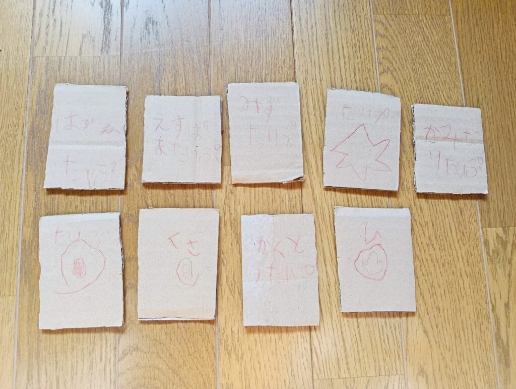 ダンボールと色鉛筆でポケモンカードを作ってくれました!