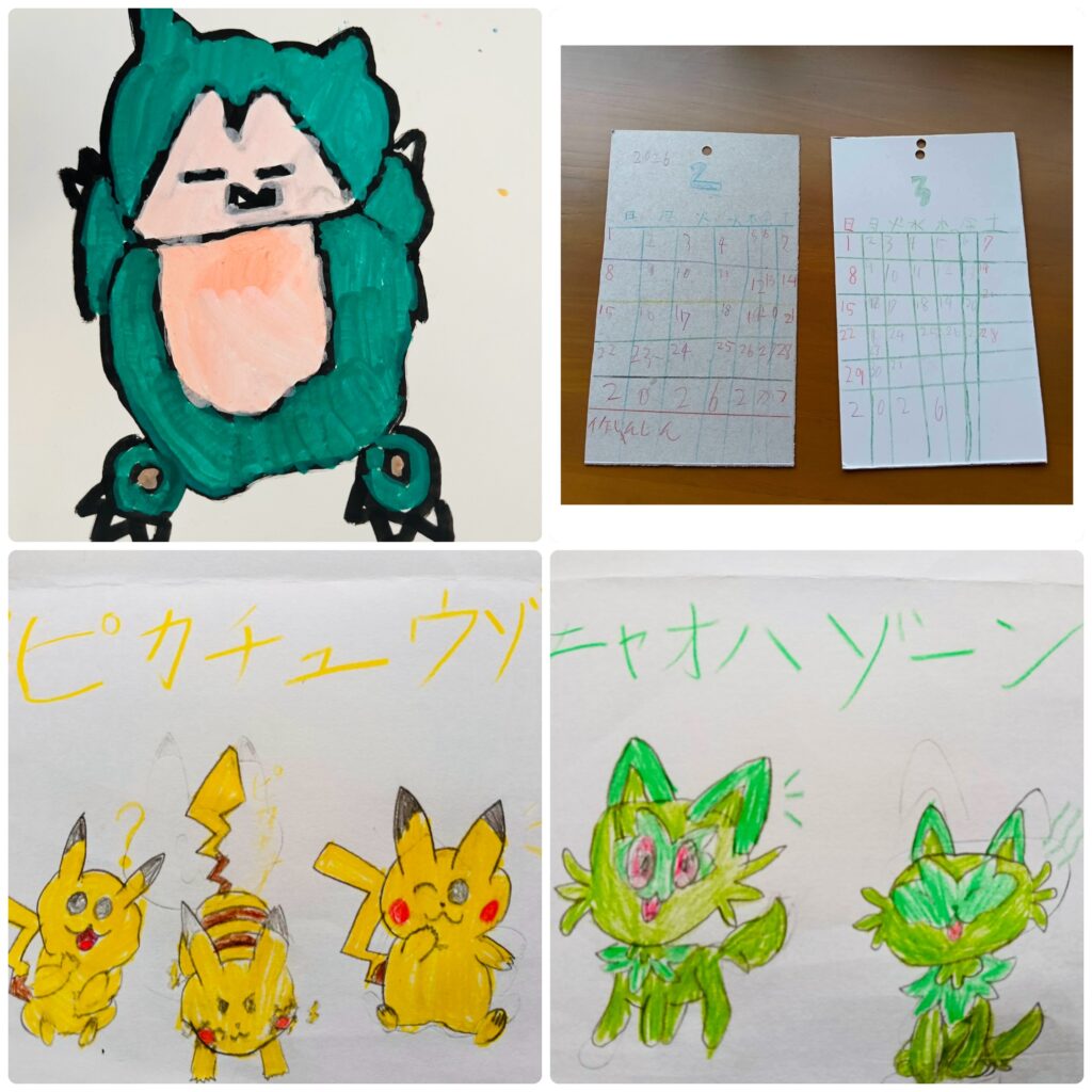 ポケモンの冊子の絵を見ながら描いたそうですが、右端の絵は自分で考えて描いたとのこと。どの表情もとっても愛嬌があってかわいらしいです✨