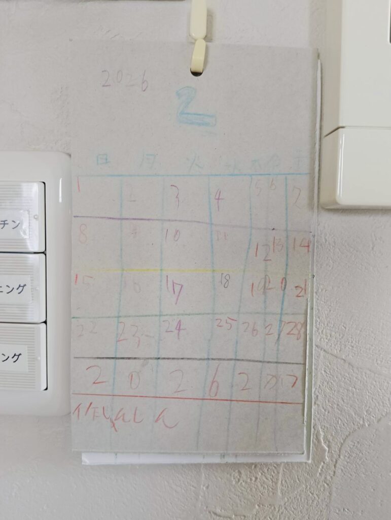 マスの中には数字がていねいに書かれていて、カレンダーには2026も文字も!