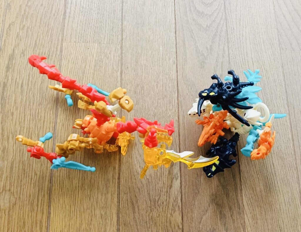 自由自在につけたりはずしたりできるので、作るのがおもしろいそうです。あっという間に大きなドラゴンが完成しました!迫力がありますね。