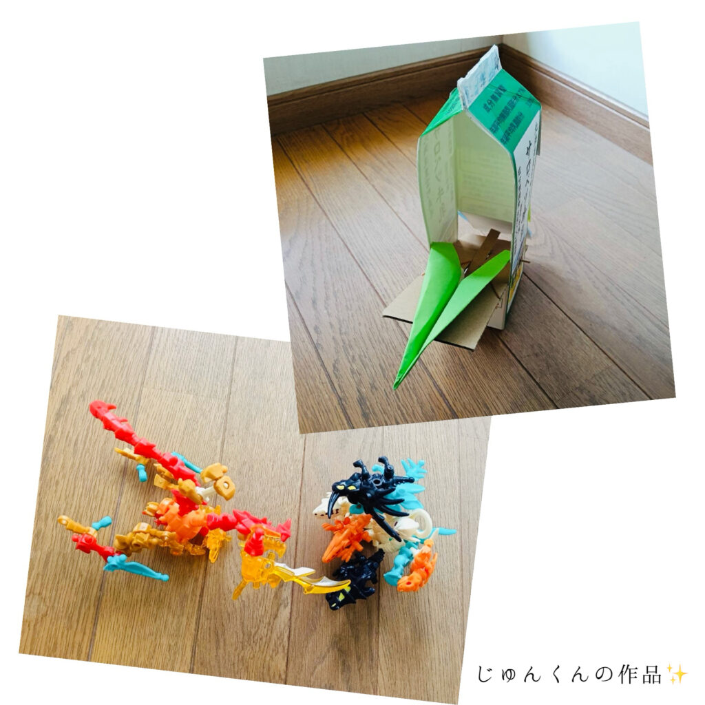 こちらは、じゅんくんが最近ポケモン以外ではまっている“ほねほねザウルス”という組み立ておもちゃでつくったオリジナル作品です✨